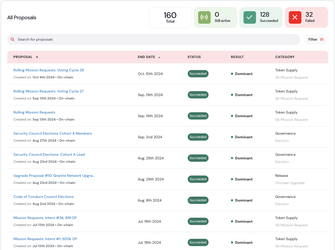 **Dominant**: Proposals where the result is ≥ 90% in either direction.